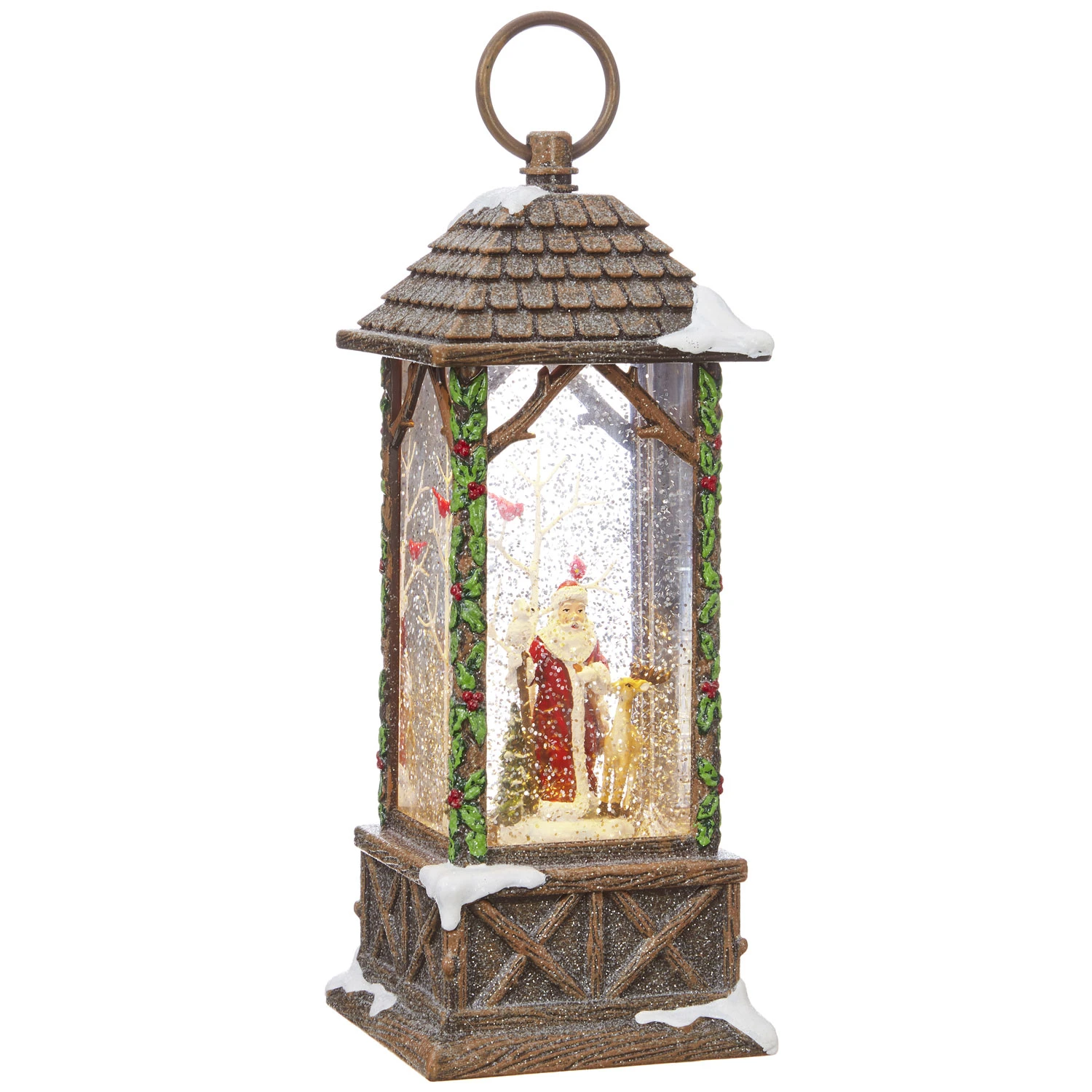 11 Inch Lighted Woodland Santa Swirling Christmas Water Globe