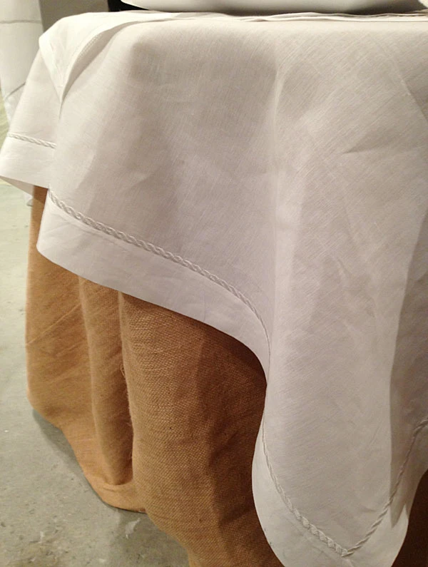 High Quality Jute burlap table skirt fully lined.