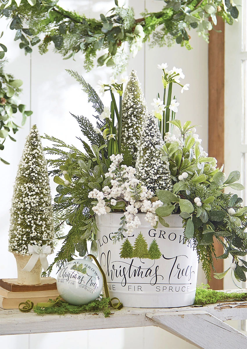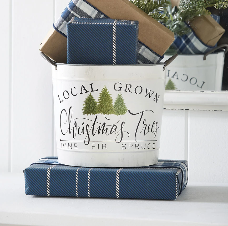 14 Inch metal handled bucket for your Holiday and Christmas decor. Add your favorite items from birch stix to ornaments, greenery, or firewood. The uses are endless!