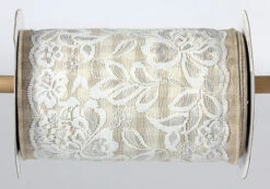 Cream And White Sack Cloth Check – Lace Overlay – 6 Inch X 5 Yards