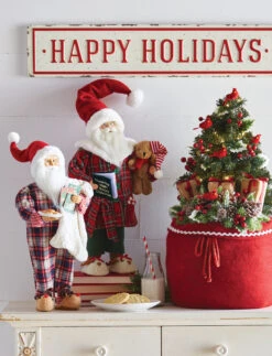 Set Of 2 Assorted 16 Inch Red And Plaid Ready For Bed Posable Elf Christmas Figures