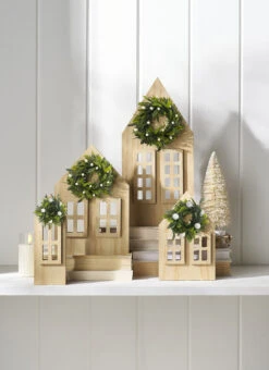 Wind Up Animated Lighted Musical Holiday Wood House Battery Operated