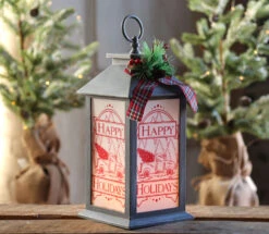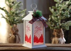 13 Inch Battery Operated Lighted White Holiday Lantern With Realistic Flame Effect