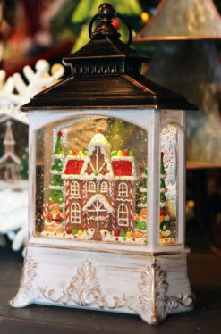 Musical Lighted Water Lantern With Gingerbread House Design – Optional Music Setting