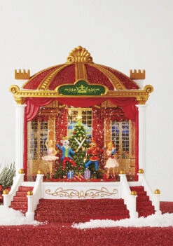 Lighted Water Greenhouse Cardinals, Red Amaryllis And Evergreens