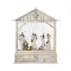 Lighted Water Lantern Nativity Scene With Optional Music Setting In Swirling Glitter