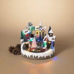 Battery Operated Lighted Musical Animated Winter Holiday Snow Village – Moving Train