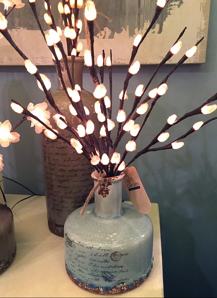 From The Light Garden. Add any of our 20 Inch Lighted Branches to our new taupe crackle shabby chic vase. Choose one of our lighted branches, add the vase for the perfect gift all your friends and family will love.