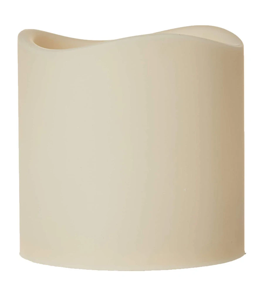 Outdoor Battery Operated 4 Inch Diam x 4 inch Tall Flickering candle will not melt in the sun.