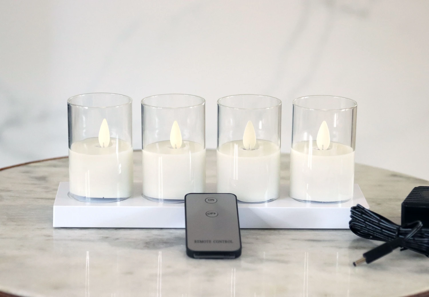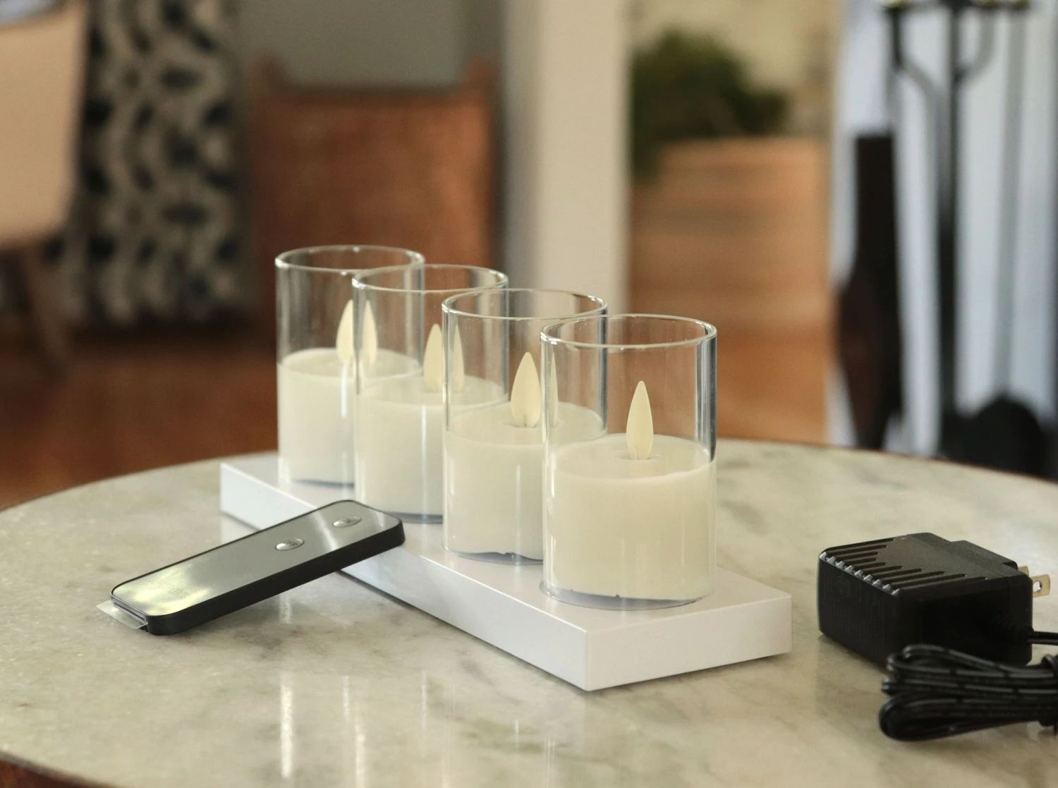 Moving Flame Simplux Ivory LED Votive 2 X 4 – Multi Timer – Remote Ready