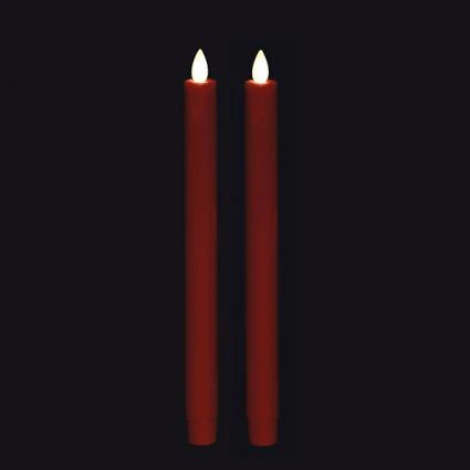 Remote Control 10 Inch Red Torchier Moving Flame Taper set of 2 are like no other battery operated candle. The flame moves creating dance like motion that is stunning and so realistic.