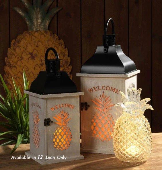 Rechargeable Lantern With Fire Glow Light Unit 12 Inch Green Enamel